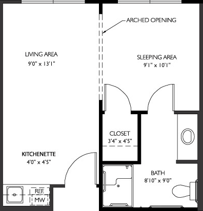 Jasmine1 Bedroom / 1 Bath350 Square Feet